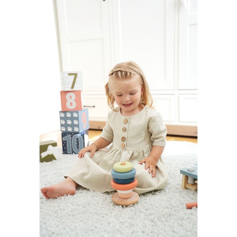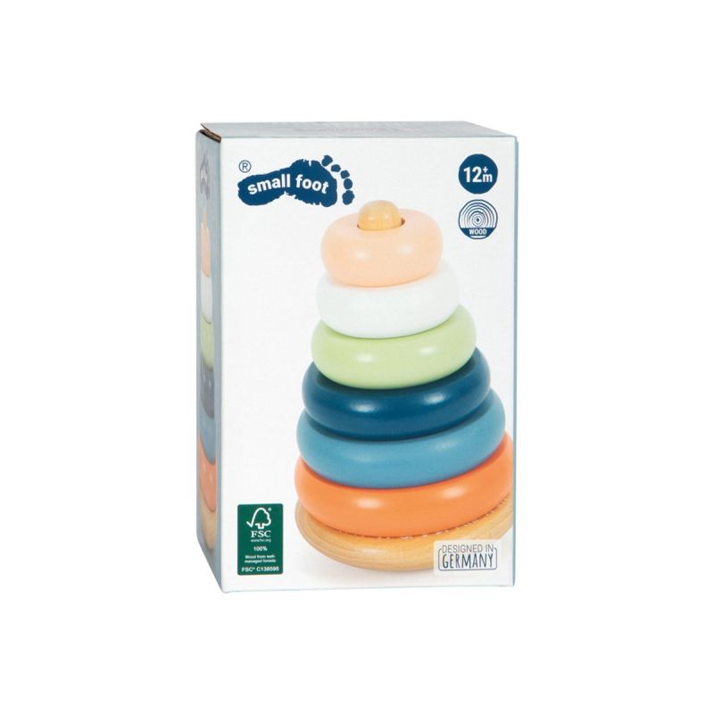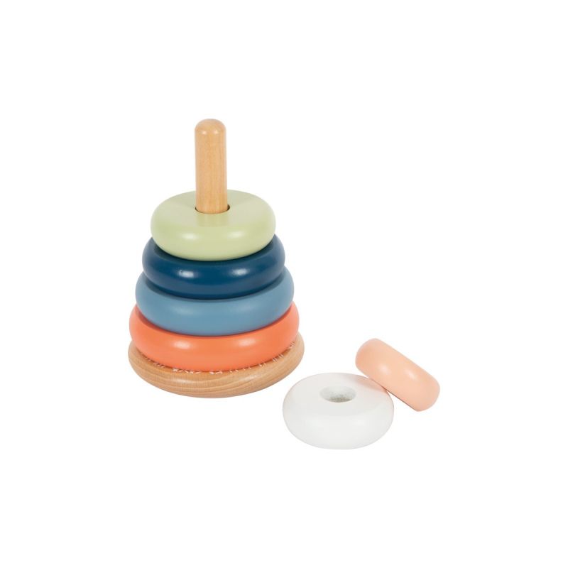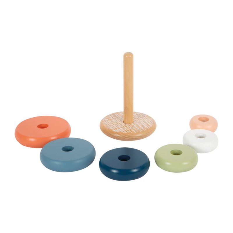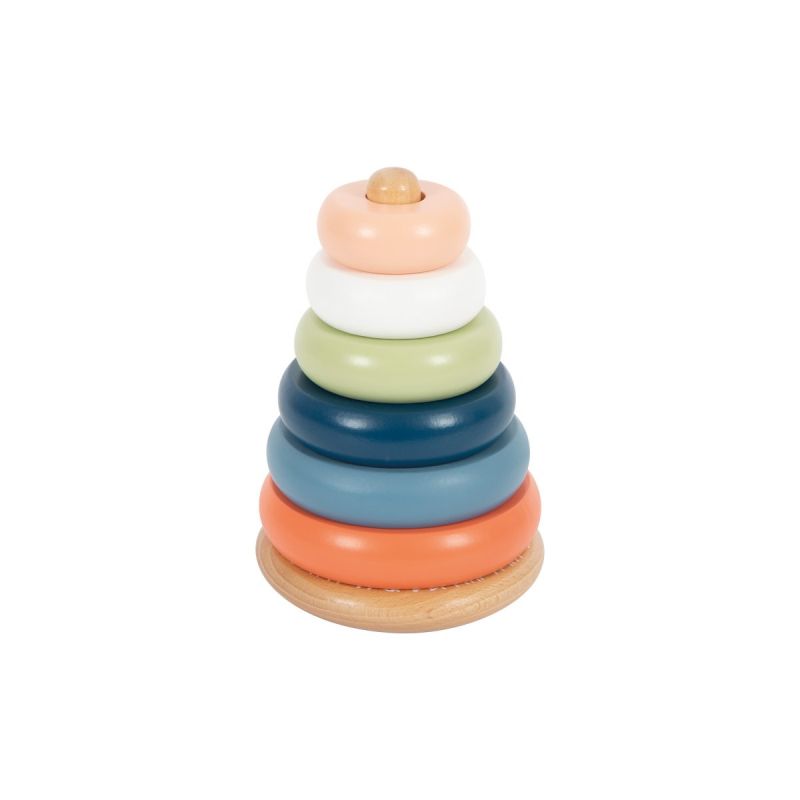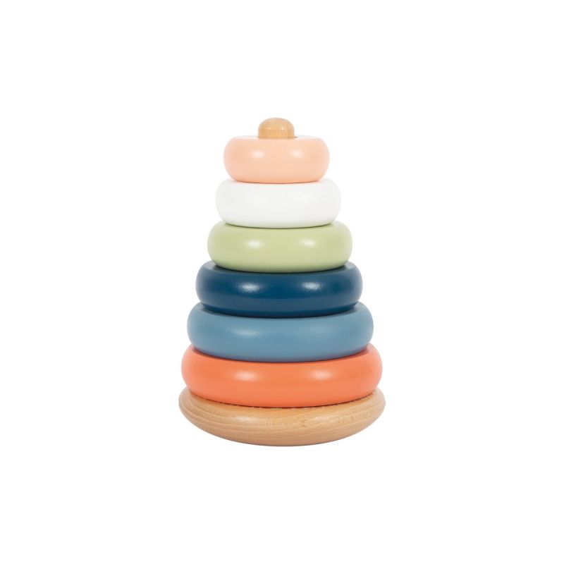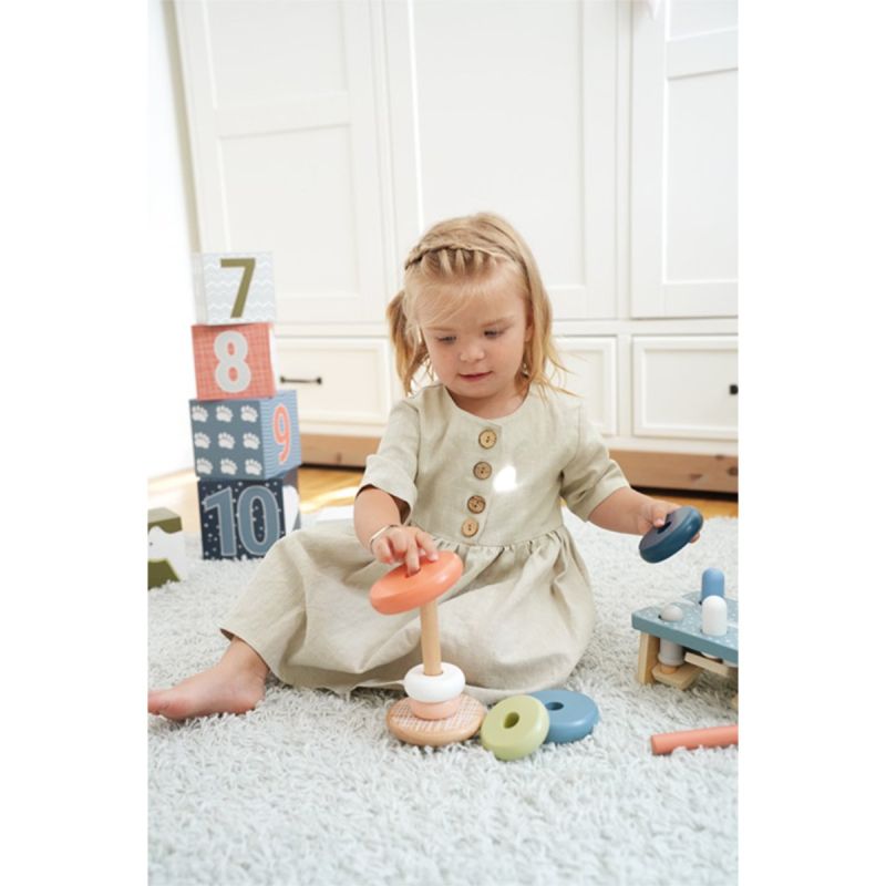 Тази кула за подреждане, изработена от сертифицирана дървесина, мотивира дори най-малките деца да сортират. Тренира двигателните умения, координацията око-ръка и подобрява разбирането за цветовете и размерите. Заоблената основа позволява на кулата да се люлее, предизвиквайки сръчността на децата по забавен начин.