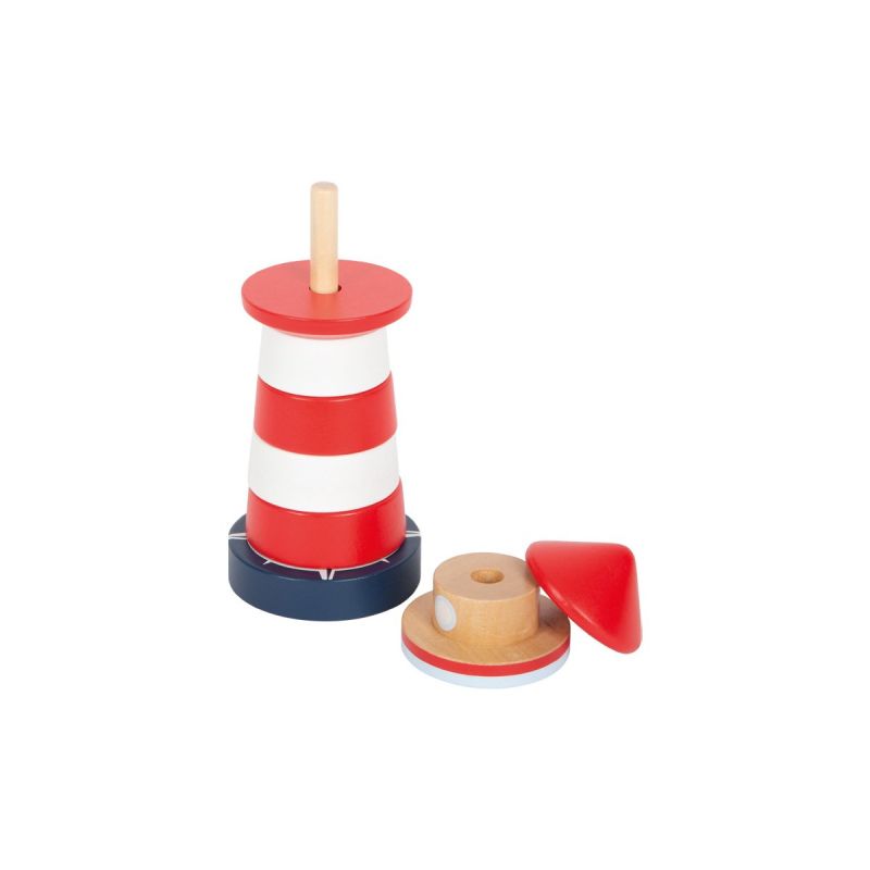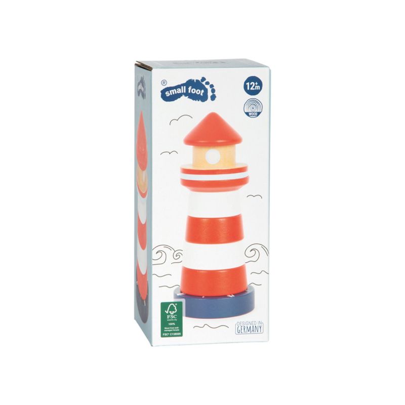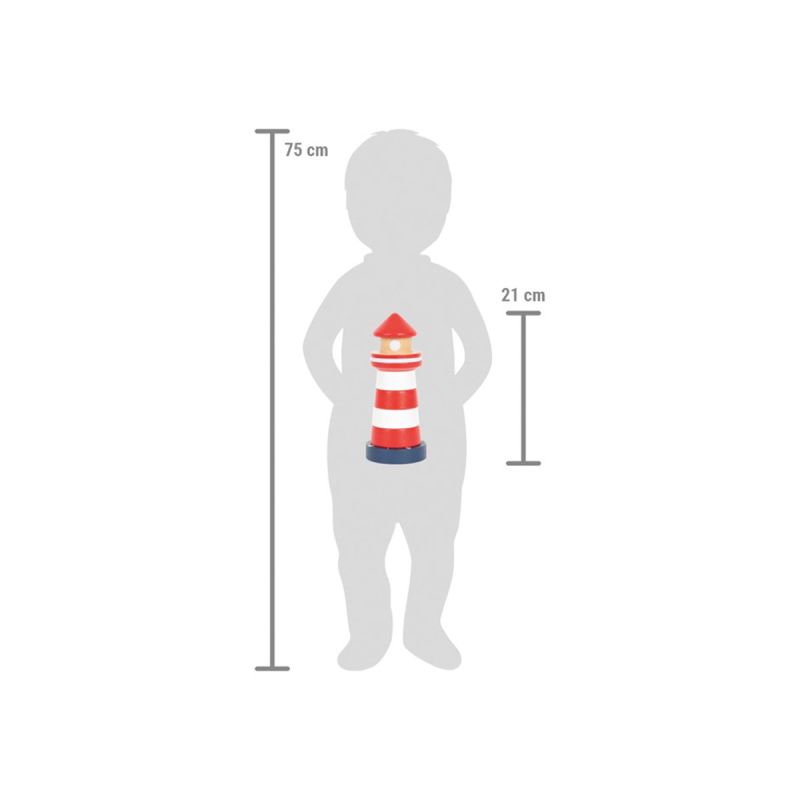 Тази кула, изработена от здраво дърво, мотивира дори най-малките деца да сортират седемте различни елемента на фара по размер един върху друг. Създава страхотна възможност за трениране на двигателните умения, координацията око-ръка и разбирането на цветовете и размерите.