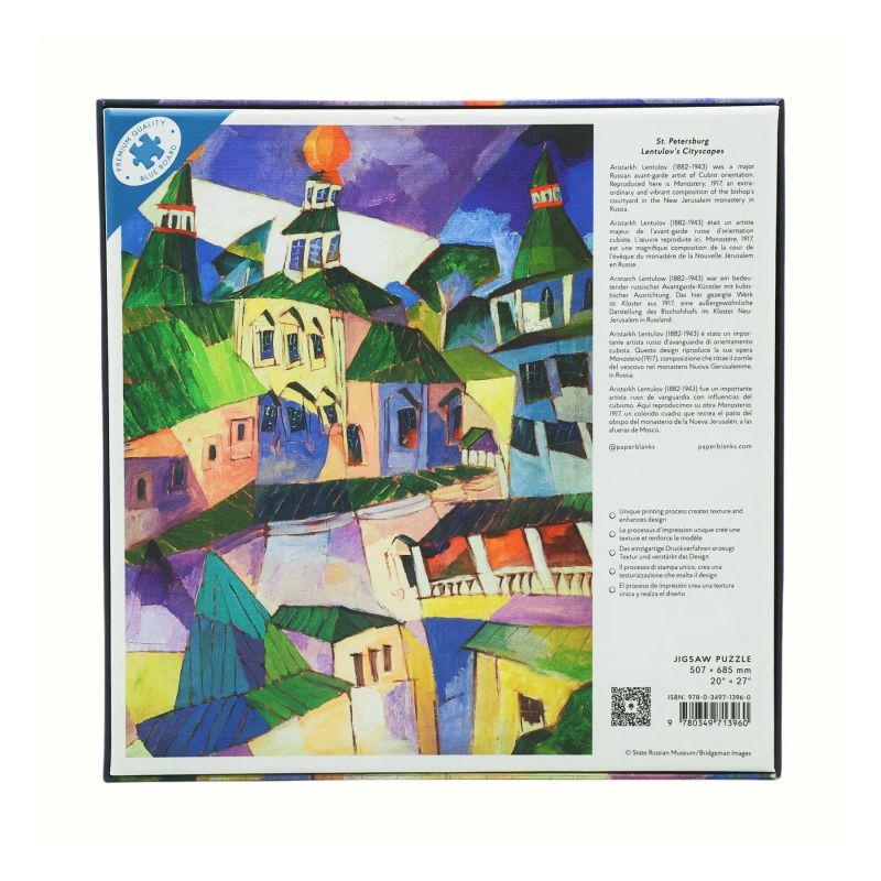 Аристарх Лентулов (1882–1943) е един от водещите руски авангардисти с кубистична насоченост и изявен представител на Московската школа по изкуства. Тук е възпроизведено неговото произведение „Манастир“ (1917) – изключителна и изпълнена с цвят композиция, изобразяваща епископския двор на манастира „Нов Йерусалим“ в Русия.