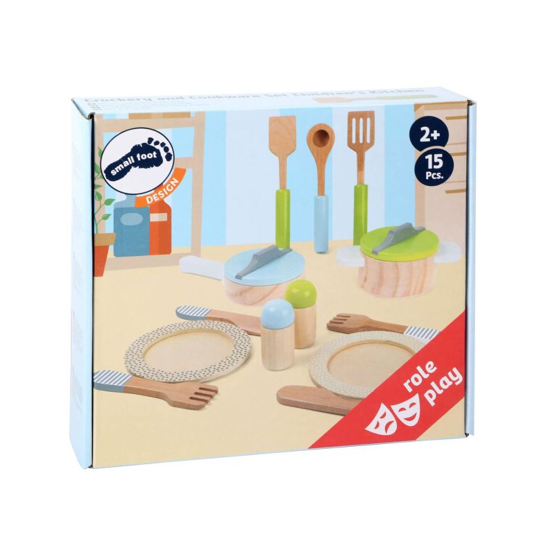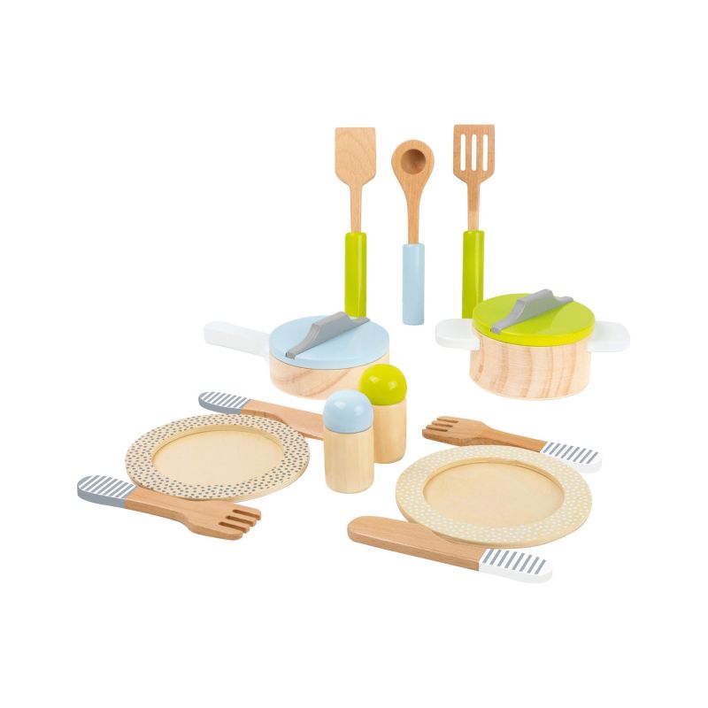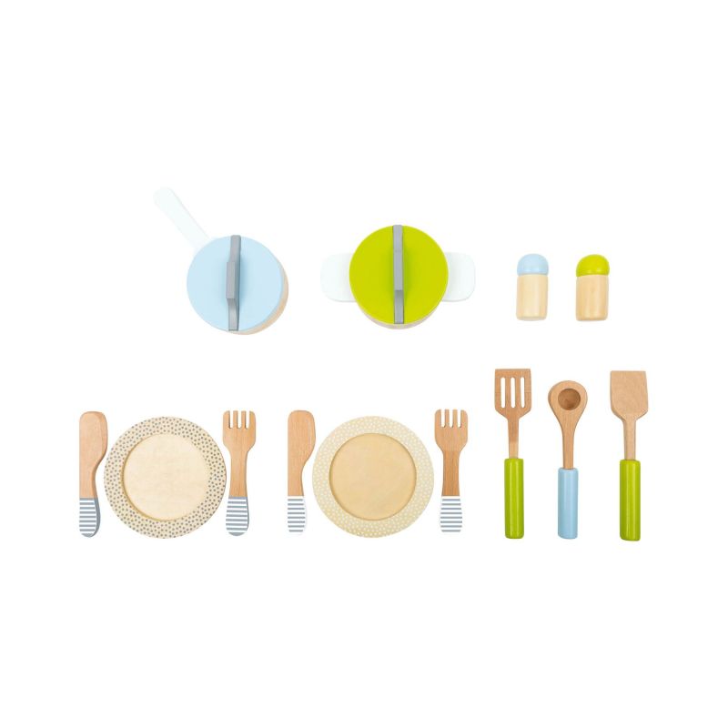 Small Foot Комплект съдове и прибори за готвене, детски, дървени, 13 части