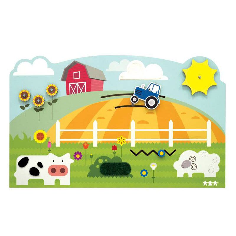 Тематична манипулативна дъска с фермерски мотиви, която насърчава фините двигателни умения при децата.