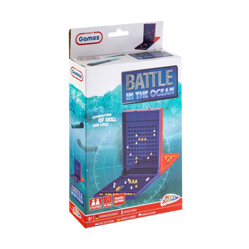 Настолна игра "Бойни кораби" в удобна за пътуване опаковка, подходяща за двама играча.