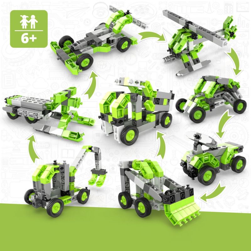 Младите автомобилни инженери ще изучават ключови принципи на STEM (наука, технологии, инженерство и математика), докато запълват детските си гаражи Engino с до 15 свръхмощни автомобила, които ще трябва да създадат от нулата! Този мултимоделен конструктор, с 15 модела, включва печатни и онлайн инструкции за построяване на: бобкат, триколка, кабриолет, самосвал, бъги, багер, космически кораб и още!