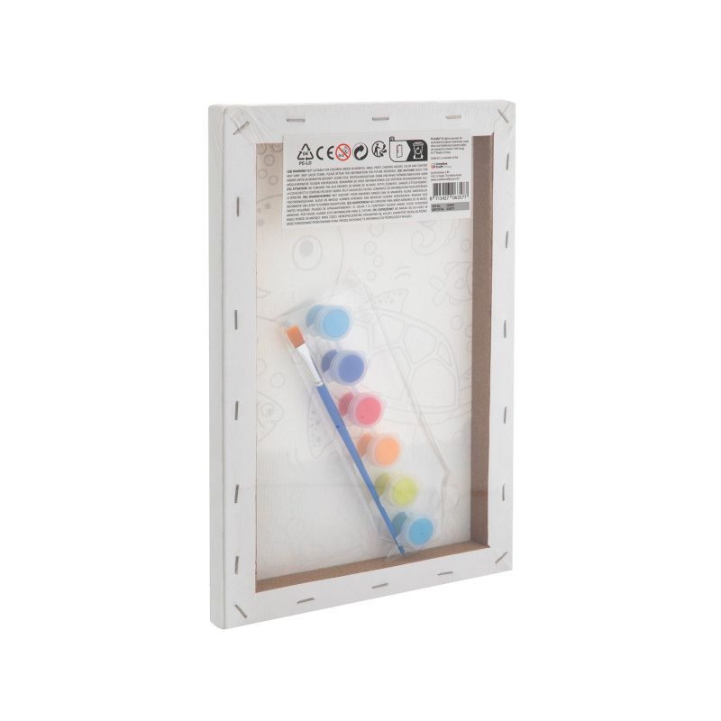 Опаковката включва платно, 6 цветни бои и четка за рисуване.