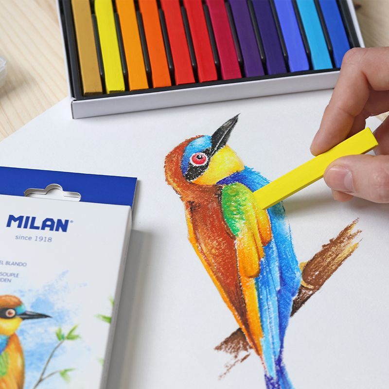 Кутия с 12 меки пастелни пръчици MILAN Art за рисуване, смесване, замъгляване и покриване на големи площи от рисунката.