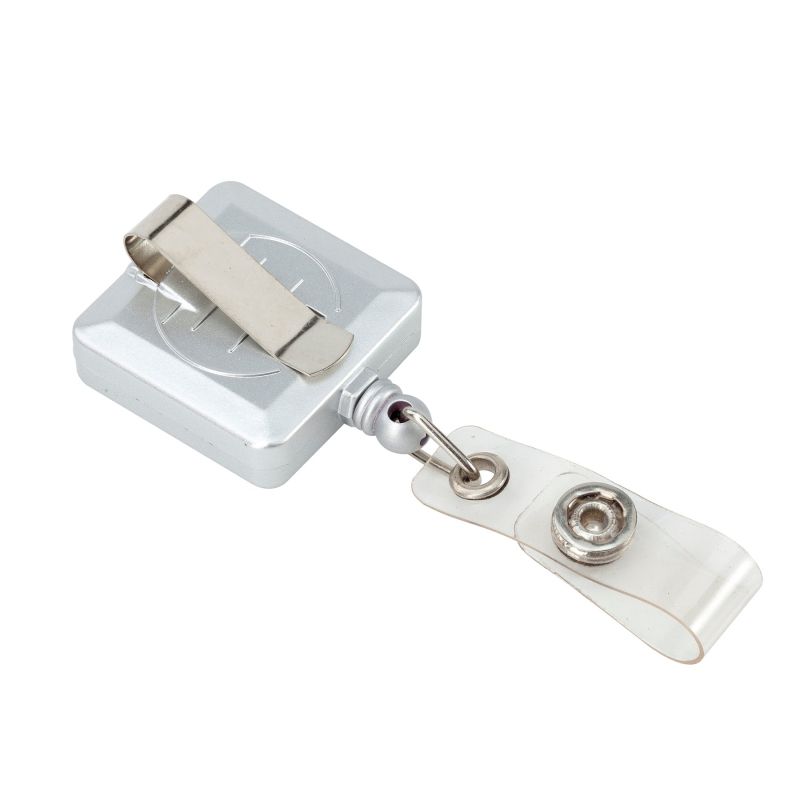 Ретрактор, ролетен държач за бадж, с клипс, квадратен, сребрист, 50 броя