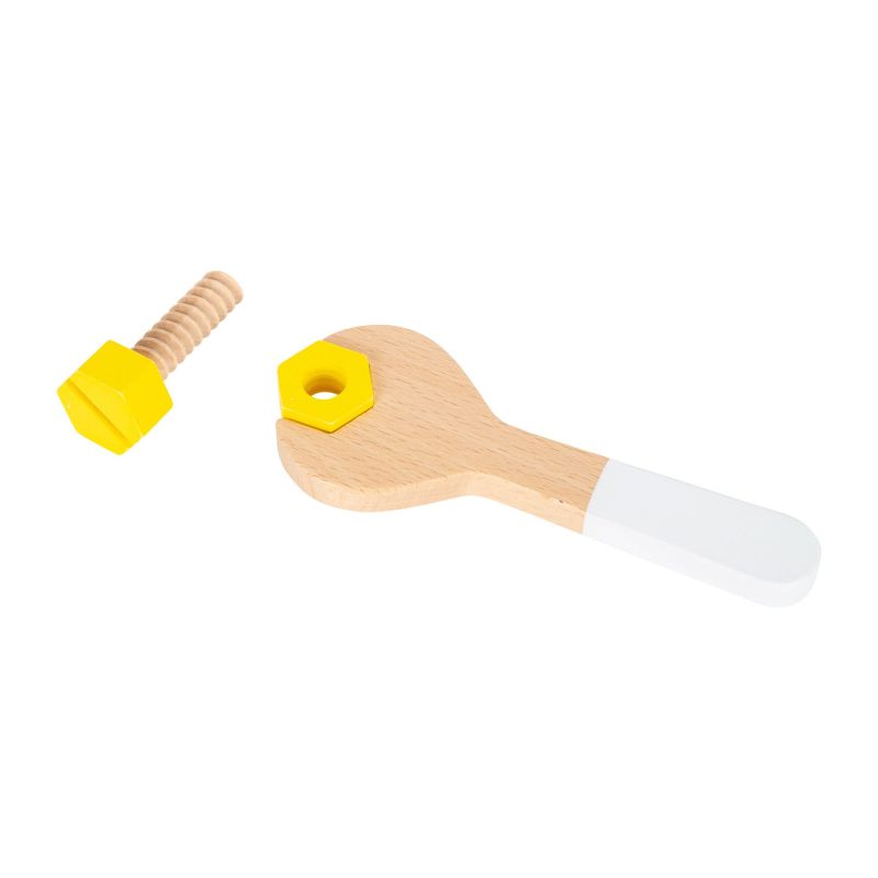 Комплектът включва: 6 дървени инструмента и аксесоари: 1 чук, 1 гаечен ключ, 1 отвертка, 1 чифт клещи, 1 нивелир, 11 винта, 11 гайки, 1 бормашина, 3 приставки, 4 големи пластини за винтове, 4 средни пластини за винтове, 4 малки пластини за винтове.