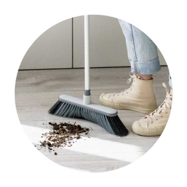 Когато е сгъната, дръжката заема минимално място в шкаф или килер. Специална зона против плъзгане предпазва от падане, ако е поставена до стената.