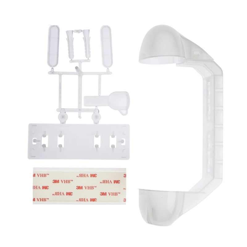 Залепва се с двустранна лента или винтове към стената.