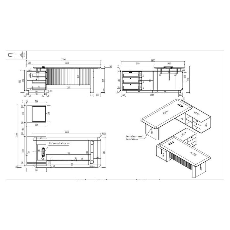 Бюро RFG Parma, 2200 х 1850 х 760 mm, ПДЧ 50 mm, орех и перлен графит