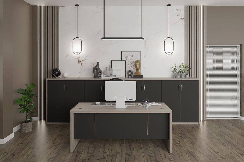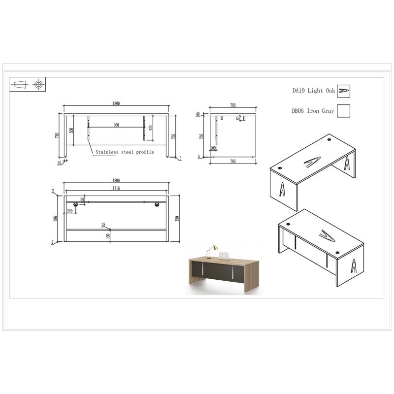 Бюро RFG Milano, 1800 х 790 х 750 mm, ПДЧ 40 mm, светъл дъб и тъмносиво