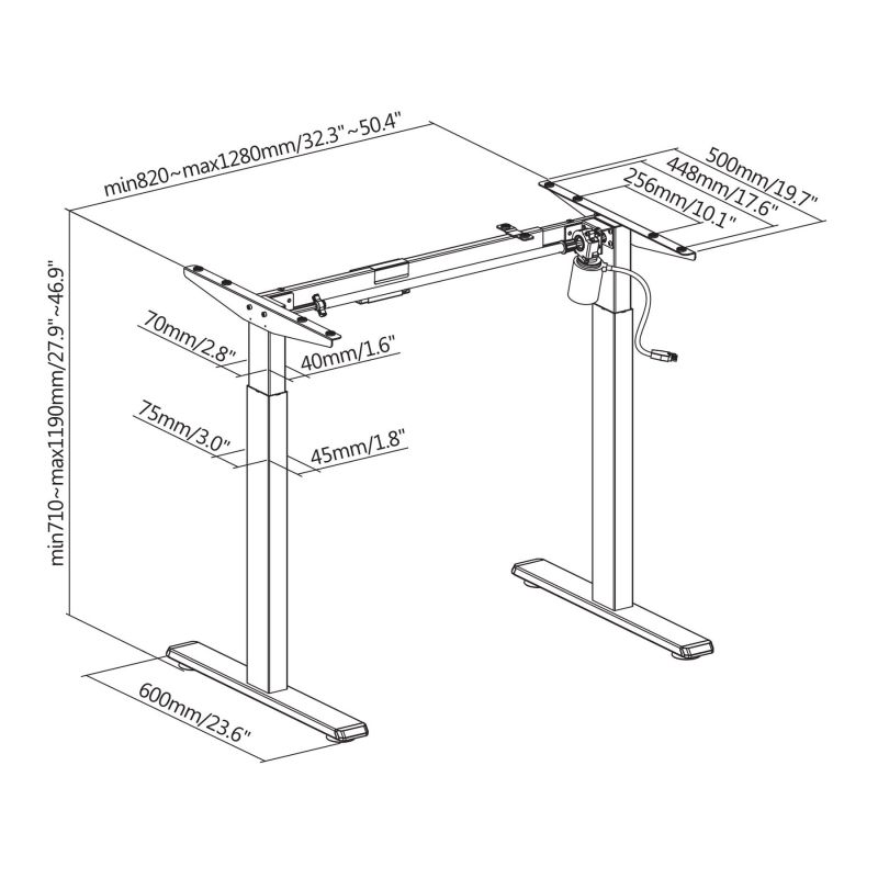 С регулируема височина в диапазон от 710 до 1190 mm, бюрото ти позволява да избереш нивото според собствените си желания. С един електрически мотор и възможност за запаметяване на три предпочитани височини за работа, промяната става лесно и удобно. С максимална скорост от 25mm/s, бюрото предлага бързо и плавно движение нагоре и надолу, като същевременно осигурява комфорт и ефективност по време на работа.