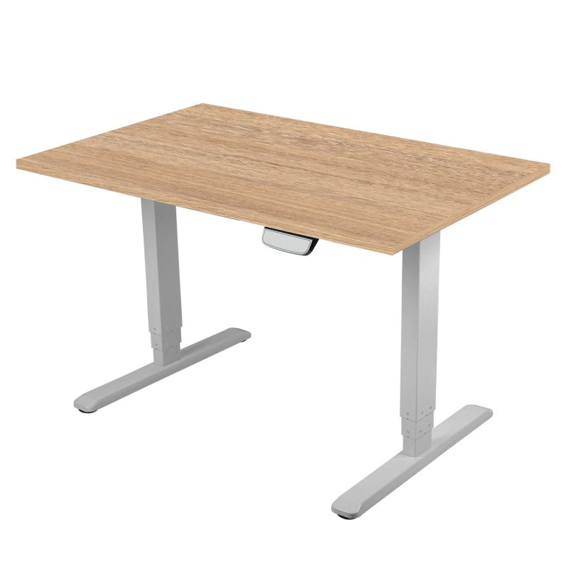 Ергономично eлектрическо бюро RFG, 160 x 80 cm, ПДЧ 25 mm, плот кехлибарен дъб, сиви метални крака