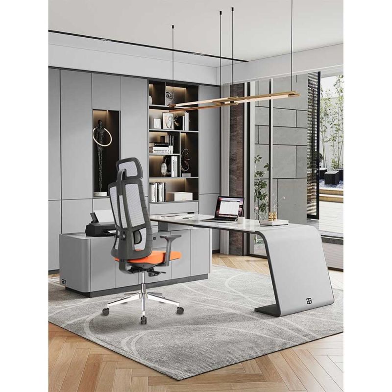 Седалката е проектирана с висококачествена пяна и текстилна дамаска, осигурявайки удобство, като същевременно се грижи тялото Ви да остане в правилна и продуктивна позиция.