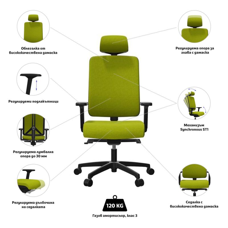Ергономичен стол Rim Flexi FX1114, ST1 механизъм, до 120 kg, зелен