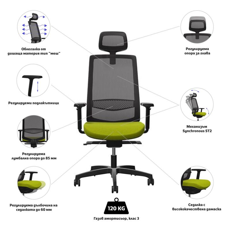 Столът е оборудван със Synchronous механизъм ST 2 за осигуряване на така нареченото динамично седене.