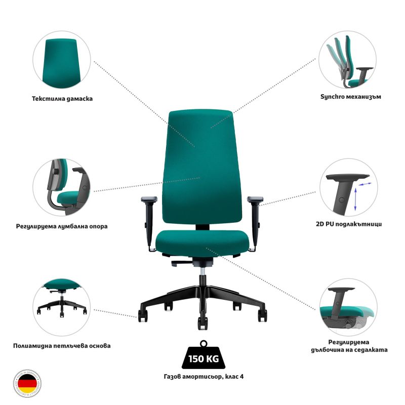 • Ергономичен стол Goal 152 GW 24/7 със Synchronous механизъм.