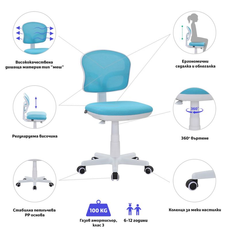 Детски стол RFG Honey White, меш, до 100 kg, син