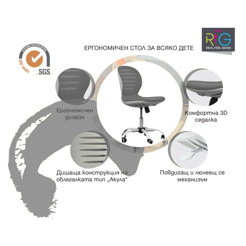 Детски стол RFG Flexy Black, дамаска и меш, сива седалка, сива облегалка