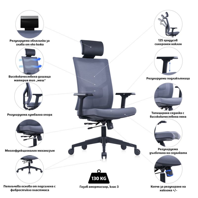 Погрижете се за Вашето тяло и пълноценното изпълнение на задачите си и започнете промяната сега! Имате възможност да се възползвате от допълните опции за разнос и монтаж и наш служител ще достави стола точно до бюрото Ви!