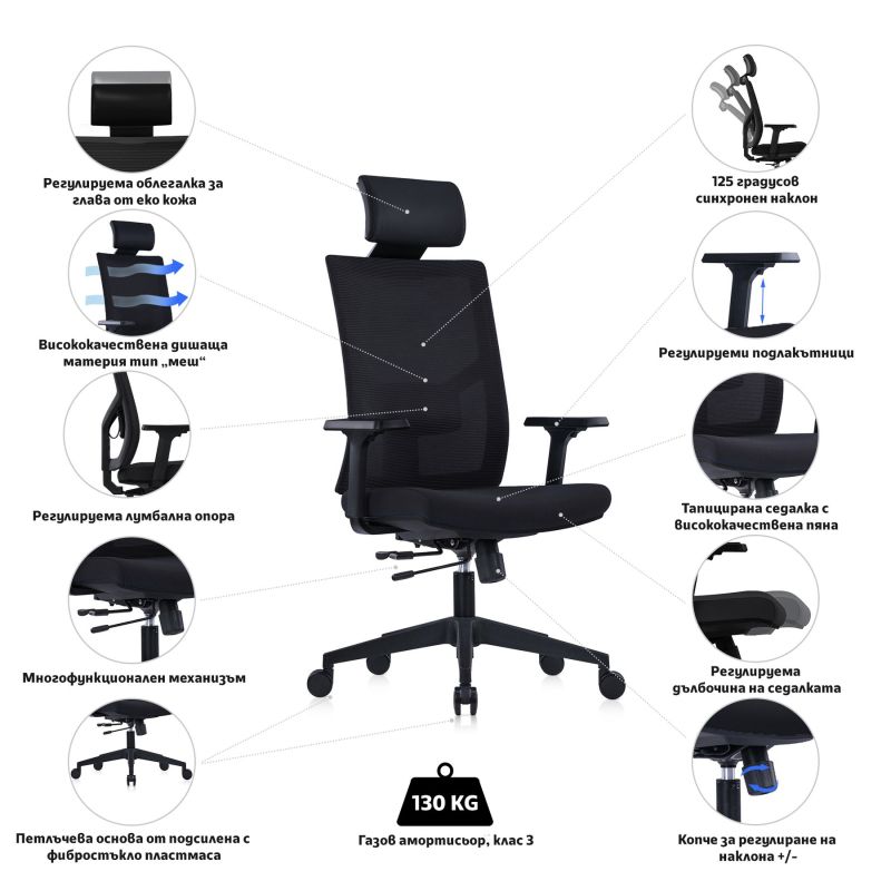 Погрижете се за Вашето тяло и пълноценното изпълнение на задачите си и започнете промяната сега! Имате възможност да се възползвате от допълните опции за разнос и монтаж и наш служител ще достави стола точно до бюрото Ви!