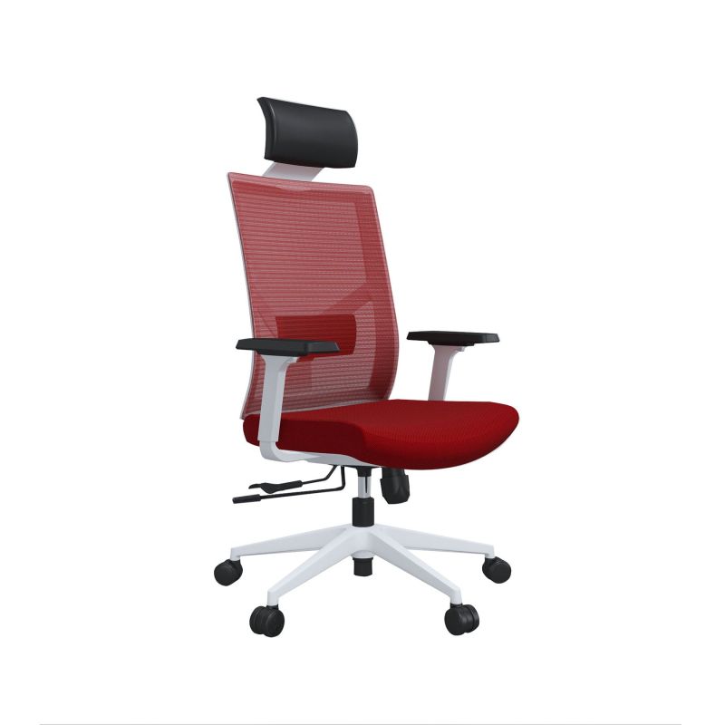 Ергономичен стол RFG Snow HB, дамаска и меш, Multi-function механизъм, до 120 kg, червена седалка, червена облегалка