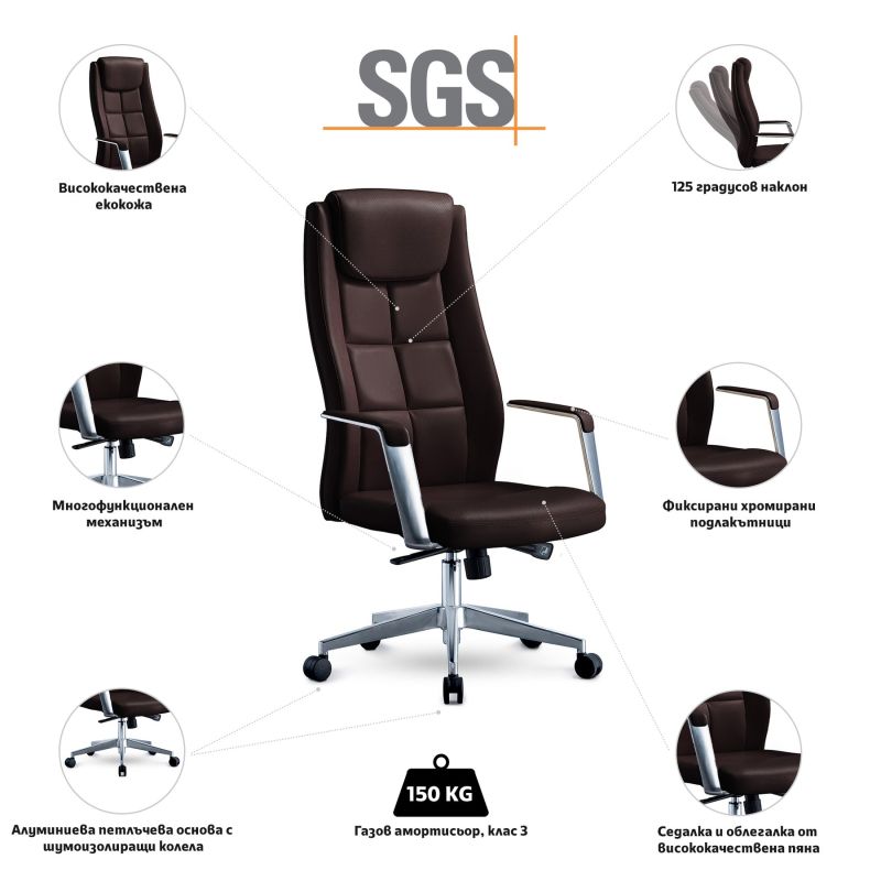 • Директорският стол е с ергономична седалка и висока облегалка.