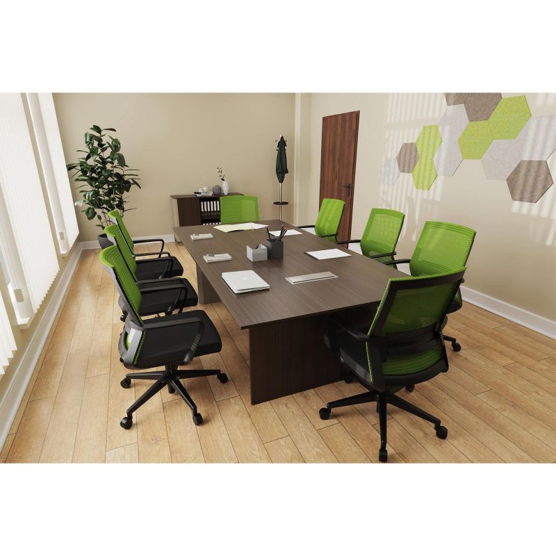 Офис стол RFG Smart W, дамаска и меш, Tilt механизъм, до 120 kg, черна седалка, зелена облегалка