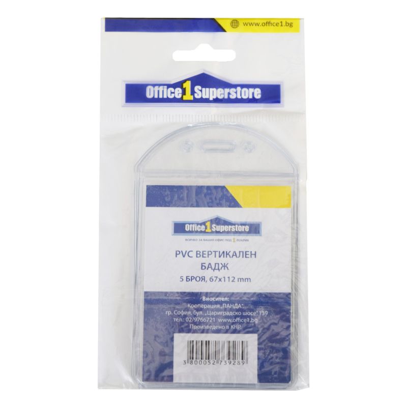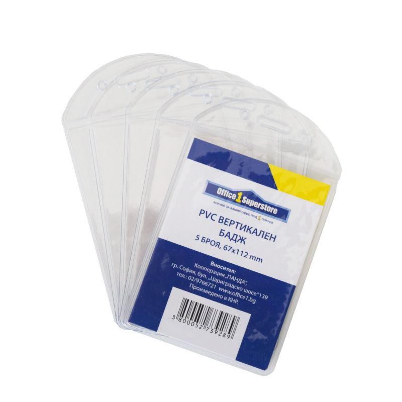 Office 1 Бадж, PVC, вертикален, 67 x 112 mm, 5 броя