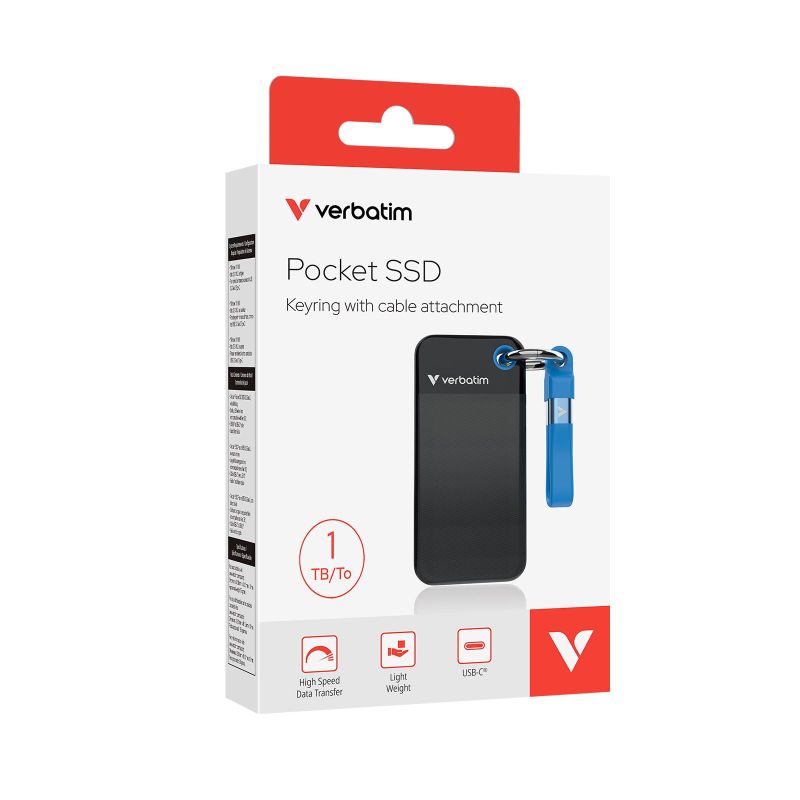 Джобният външен твърд диск от Verbatim е изключително лек и толкова малък, че може да се пъхне в задния ви джоб.Съвместим е с операционни системи PC и Mac, с USB 3.2 Gen 2 интерфейс за супер бързи скорости на трансфер на данни до 10 Gbps. SSD дискът се справя бързо с големи трансфери на данни, идеален за редактиране на видео с висока разделителна способност, управление на големи количества данни или увеличаване на производителността при игри. Pocket SSD се доставя с USB-C към USB-C кабел в удобен държач за кабели. Включеният ключодържател държи вашият SSD диск сигурно прикрепен към халка за колан или раница. Перфектен за пътуване!За допълнителна сигурност се предоставя софтуерът Nero Backup, който ви помага да архивирате всичките си файлове, папки и устройства от вашия лаптоп или компютър, когато пожелаете. Също така ви позволява да планирате автоматично архивиране до зададен час и ден. Софтуерът Nero Backup е съвместим само с операционна система Windows.
