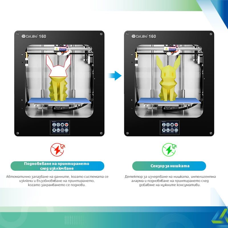 Принтер Colido 3D 160, FDM, максимална Hot Bed температура 110 °C, диаметър на дюзата 0.4 mm, USB/TF карта, 13 kg