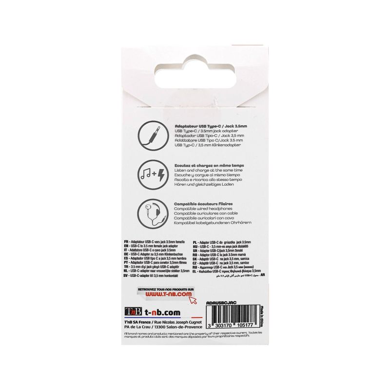 Адаптер TNB, 4 порта, USB Type-C към 3.5 mm жак, черен