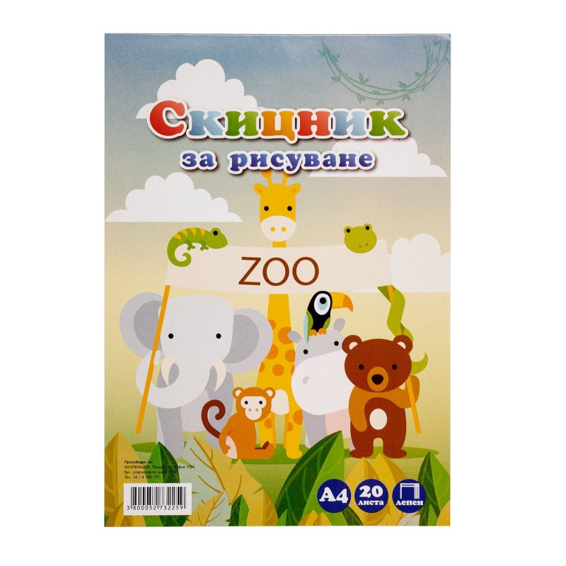 Скицник за рисуване, A4, 75 g/m2, офсетова хартия, подлепен, 20 листа