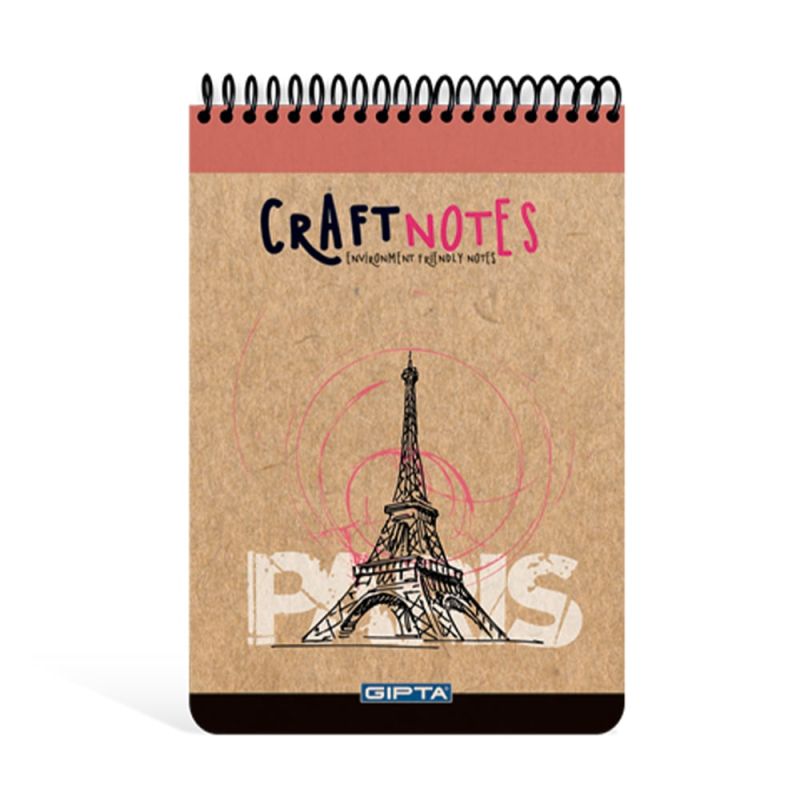 Gipta Craft Notes Пад, А5, бяла, широки редове, микроперфорация, твърда корица, със спирала, 100 листа