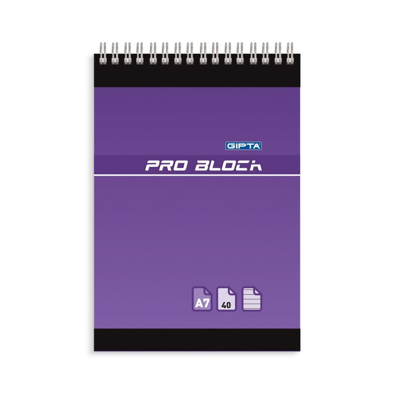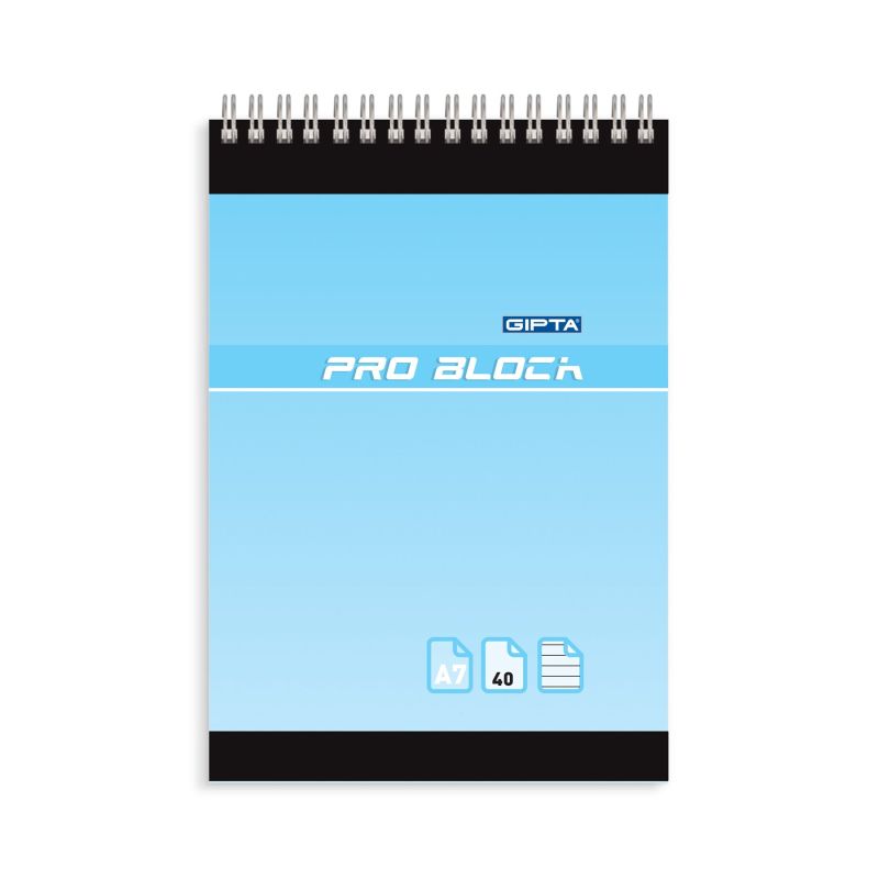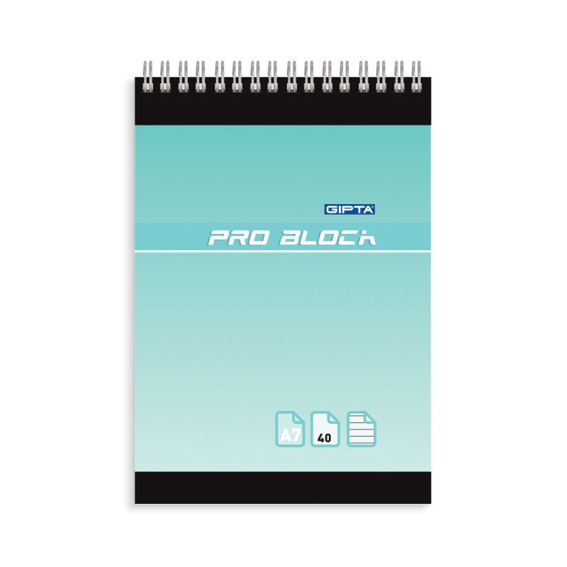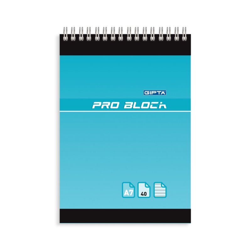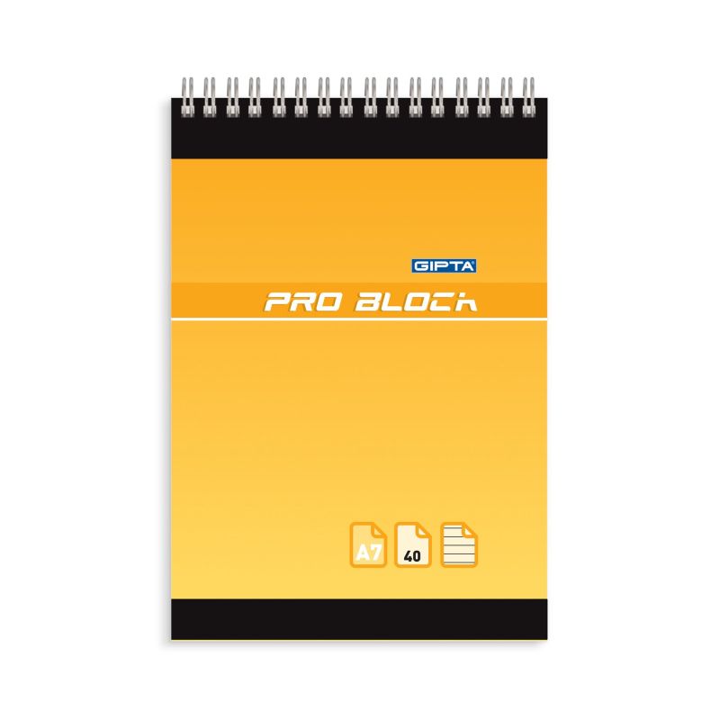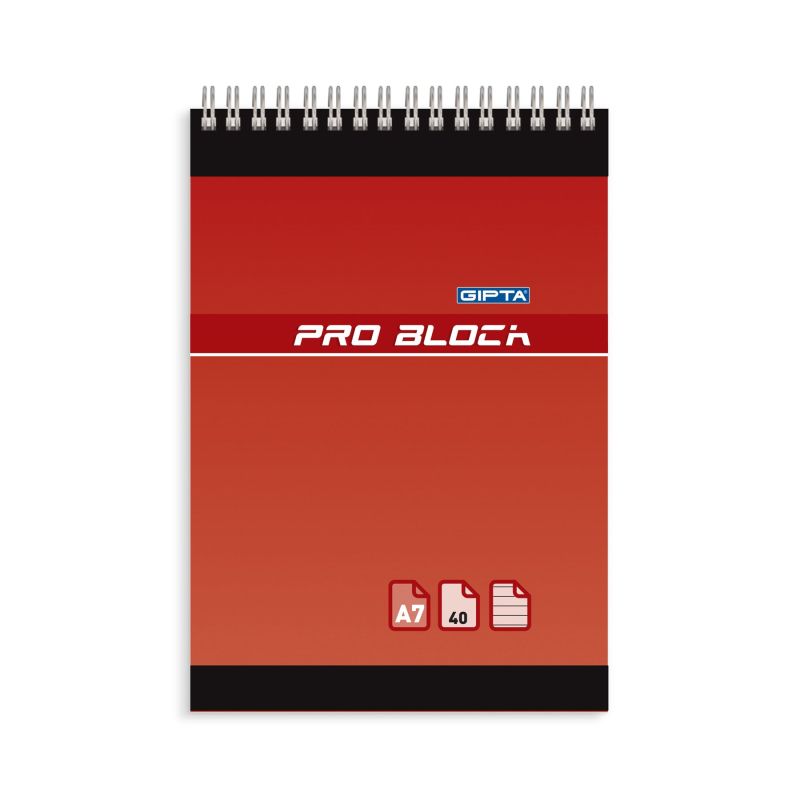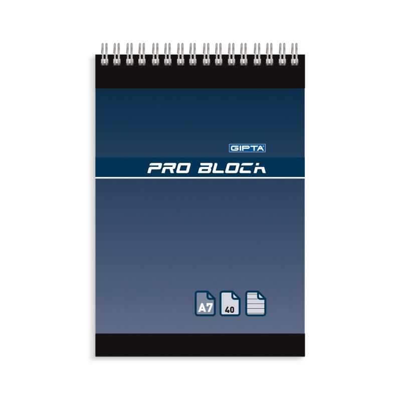Gipta Тефтер Pro-Block, А7, бяла хартия, широки редове, картонена корица, със спирала, 40 листа