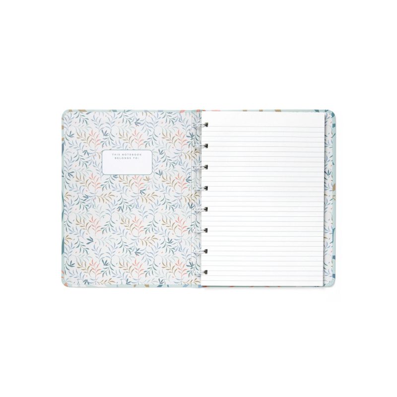 Твърдите ламинирани корици на тефтера са захванати със скрита спирала, което им позволява да се разгръщат до 360°, без опасност от деформация и изпадане на листовете.Тефтерите са създадени така, че да добавяте, местите или премахвате страници, без да се налага да ги късате.