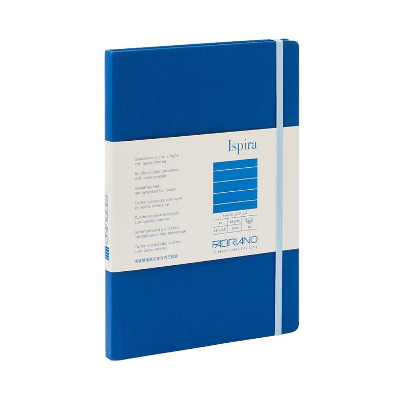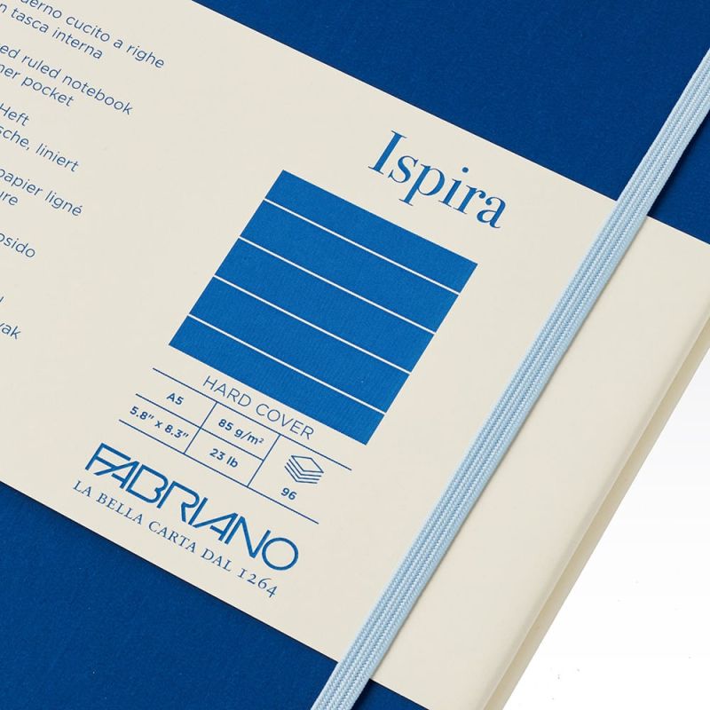Fabriano Тетрадка Ispira, A5, широки редове, шита, твърда корица, 96 листа, синя
