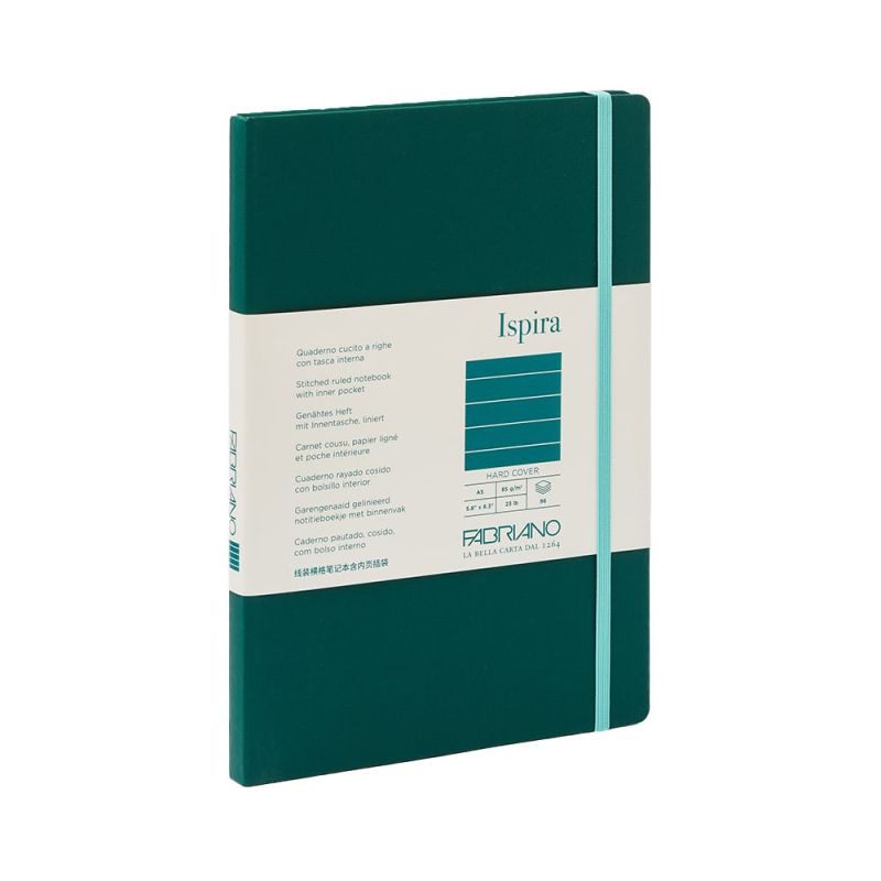 Fabriano Тетрадка Ispira, A5, широки редове, шита, твърда корица, 96 листа, зелена