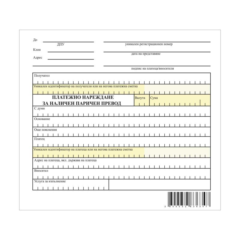 Платежно нареждане за наличен паричен превод