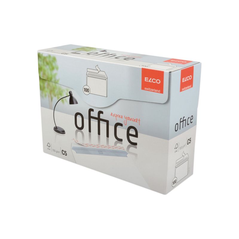 Elco Пощенски плик, C5, 162 х 229 mm, 100 g, прав капак със самозалепваща лента, бял,100 броя