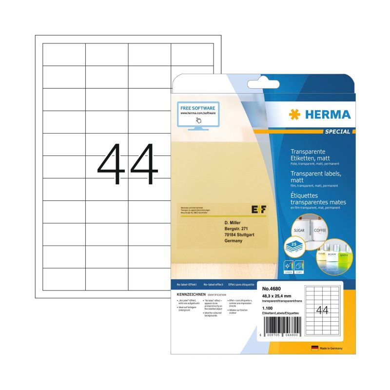 Herma Самозалепващи се етикети, A4, полиестерни, 48.5 х 25.4 mm, 25 листа
