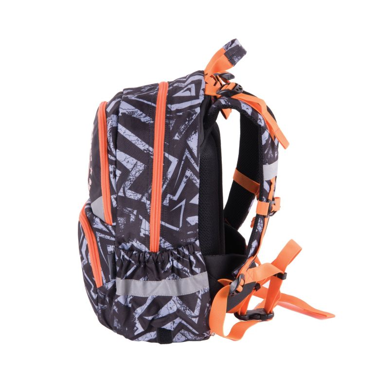 Раницата разполага с 1 основно отделение; 2 предни джоба и 2 странични.