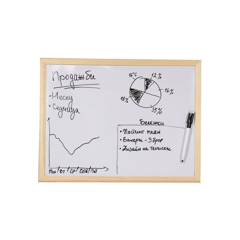 Бяла дъска за писане с борд маркери. Идеална за офиса и дома.