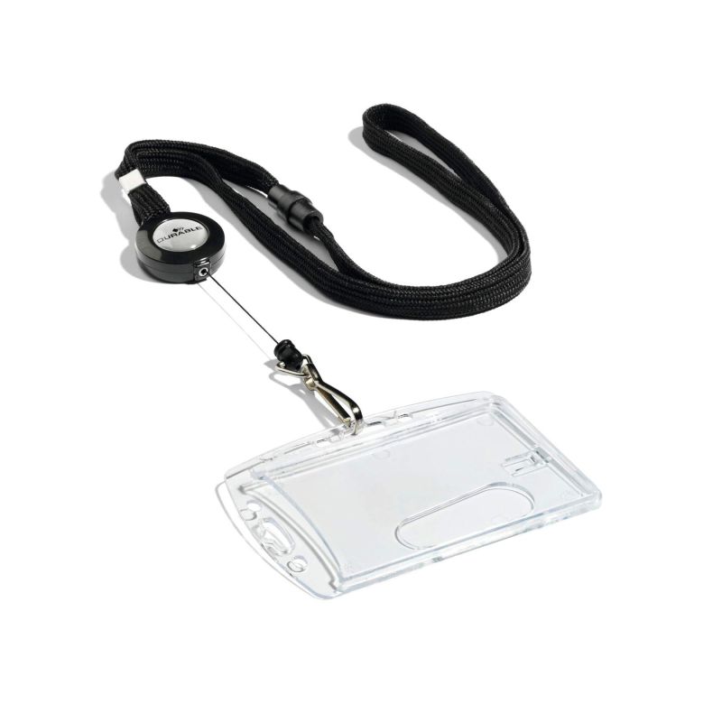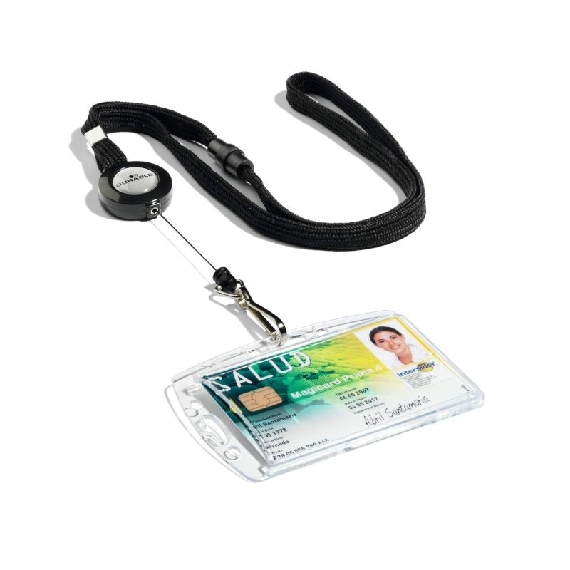 Durable Лента за бадж, текстилна, с ретрактор, черна, 10 броя