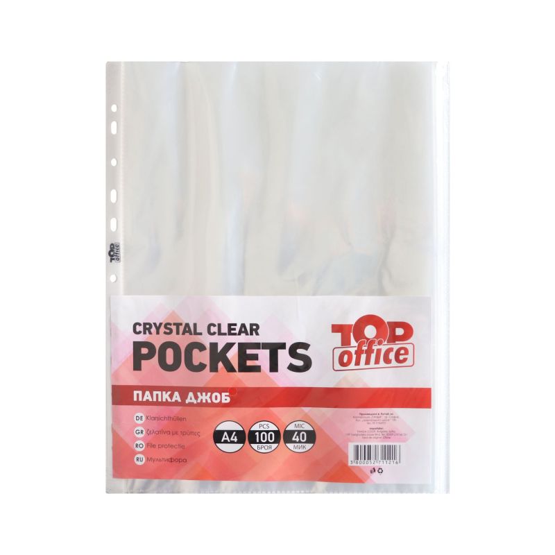 Top Office Джоб за документи, A4, 40 µm, кристал, 100 броя
