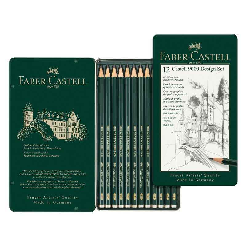 Faber-Castell Молив Castell 9000, чернографитен, комплект за дизайнери, различни твърдости, 12 броя