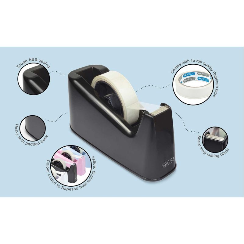 Rapesco Диспенсър за тиксо 500, за тиксо с шпула 76 mm, черна