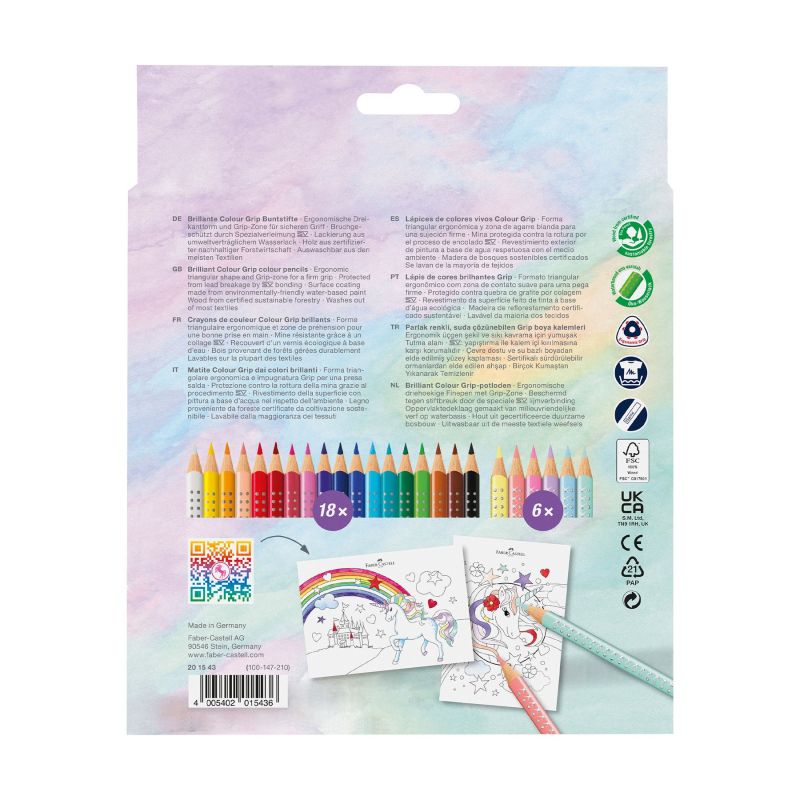Faber-Castell Цветни моливи Grip 2001, 18 стандартни и 6 блестящи цвята