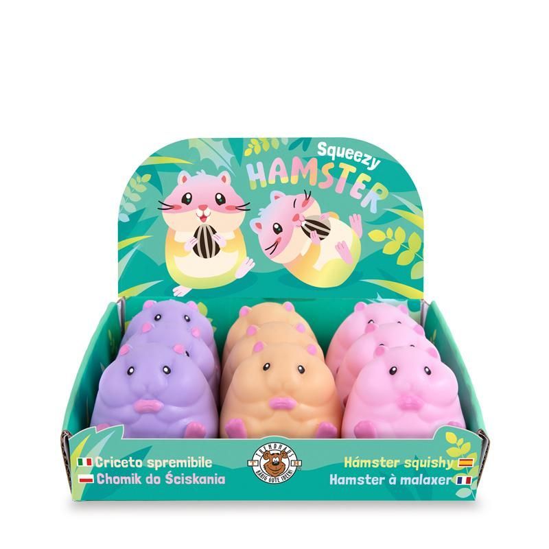 Играчка за релаксация. Този малък, мек хамстер е подходящ за стискане. Лесно се почиства с топла вода. Пълнеж: PVA прах. Достъпен в 3 различни пастелни цветове: розово, лилаво и бежово. Размери на артикула - включена опаковка: 6,0 sm x 5,2 cm x 6,6 cm