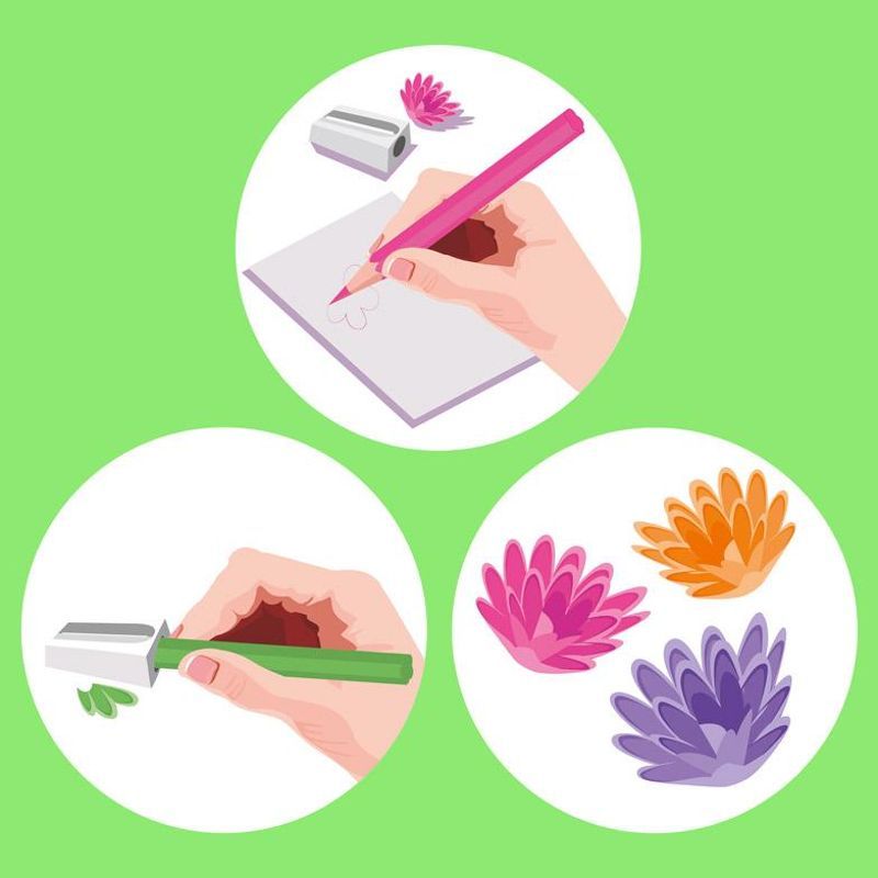Този уникален комплект цветни моливи ви дава възможност да се насладите на креативността! 9 - те цветни молива са във формата на цвете с дължина около 17,8 см. Неонови цветове и сребърно фолио.